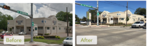 Tree Plantings in Easement Areas – Cole’s Flea Market, PISD, Busy Bee, and Texas First Bank all provided landscape easements to make room for additional enhancements beyond the right-of-way. Both of the easements in front of Cole’s and PISD have had concrete removed and trees, bushes and grass installed. Both Cole’s and PISD were lined with new curb around the easement area.