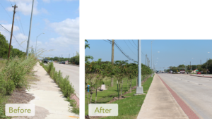 Tree relocation – 38 pre-existing crape myrtles from the SH 35 medians were salvaged and replanted in medians along McHard and Barry Rose where irrigation already existed.
