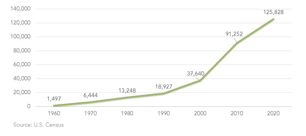 Houston is one of the most racially/ethnically diverse metropolitan areas in the nation. Between 2000 and 2010, the City of Pearland’s population became “majority minority” and since that time, our community has become even more diverse. Of more than 300 cities nationally with at least 100,000 people as of 2020, Pearland is one of just 17 where Asian, black, Hispanic and white non-Hispanic residents make up at least 10 percent of the total population. In some respects, Pearland resembles today what the nation might look like in 30 years.